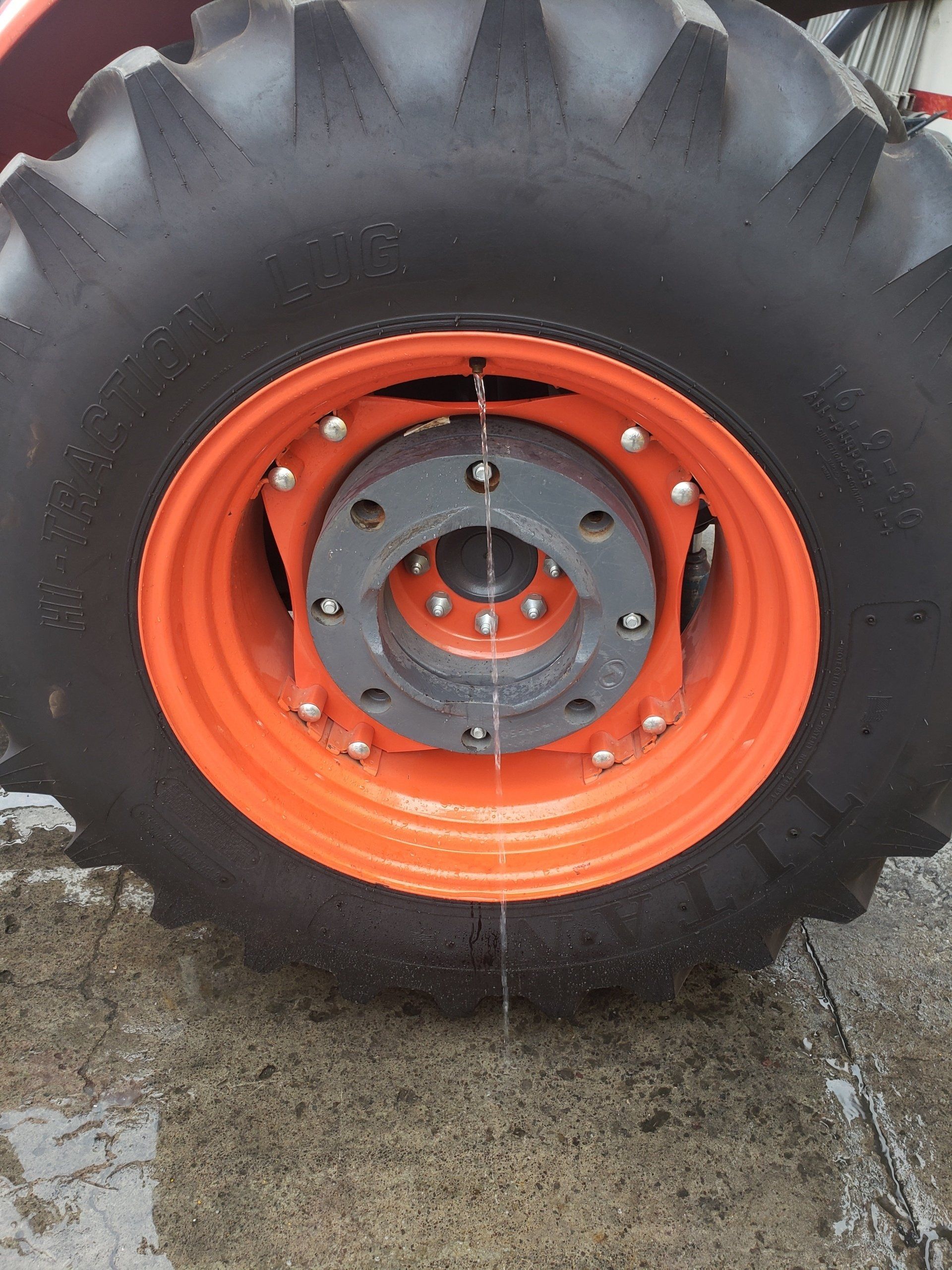 - 7. Cerrar el suministro de agua, quitar el accesorio de la llanta, poner su tapón a la válvula y quitarle la calza al tractor